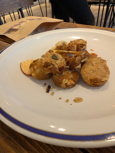 商品説明:現時点では商品の試作段階ですが、形状はバー型ではなく食べやすい丸型にする予定です。また、ドライフルーツを加えた内容量35gの商品をジップバック包装で販売することを考えています。